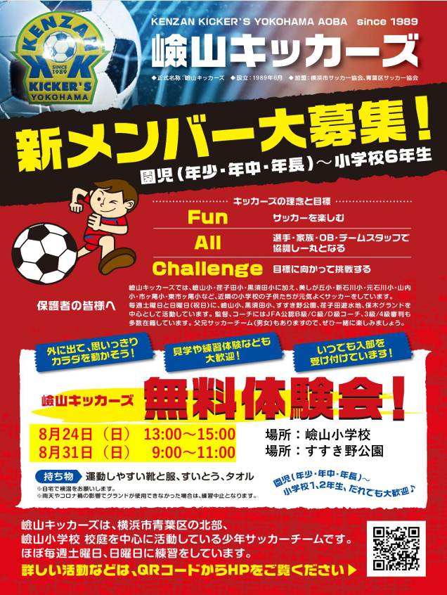 嶮山キッカーズ サッカー体験会開催!!のお知らせ